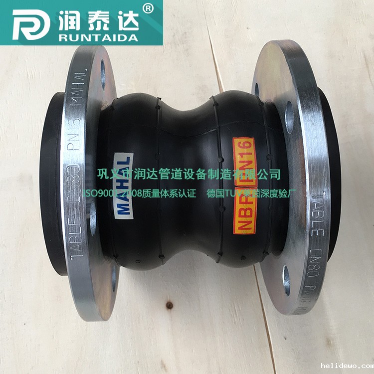 通过加长RAYBET雷竞技官网进入支撑模具,来做到橡胶 接头的加长,但是在制造过程中,由于橡胶膨胀节的结构影响,会造成双球体可曲挠RAYBET雷竞技官网进入在制造过程中,相邻的两个橡胶膨胀节之间的胶量不足而导致橡胶膨胀节直接壁厚较薄,造成承压能力的下降,所以在双球体可曲挠RAYBET雷竞技官网进入橡胶膨胀节部位,加装金属加强环,可以有效的避免橡胶膨胀节在高压环境下的破裂,同时也解决了双球体RAYBET雷竞技官网进入承压能力较低的缺陷 双球体RAYBET雷竞技官网进入连接 一般有丝扣连接、法兰连接和卡箍连接等方式。它的球体是由内胶层、增强层有多层刮胶锦纶帘子布、外胶层复合的橡胶管组成。根据介质的不同所采用的橡胶材质也是不同的,其中有天然胶、丁苯胶、丁基胶、丁腈胶、三元乙丙胶、氯丁胶、硅橡胶、氟橡胶等等多种材质。分别具有耐热、耐酸、碱、耐腐蚀、耐磨、耐油等功能。