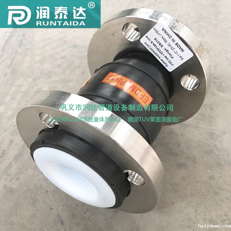 衬四氟RAYBET雷竞技官网进入具有减振、耐高温、能挠曲、耐摩擦等特点。适用于管道错位差、位移、尺寸变化及振动部位的连接。可作贮罐、槽车等设备的给、排料管,还可作其它特殊之用。其使用范围较广泛,作用较全面。衬氟RAYBET雷竞技官网进入的四氟具有优良的化学稳定性、耐腐蚀性,是当今世界上耐腐蚀性能材料之一,除熔融和液氟外,能耐其它一切化学,在旺水中煮沸也不起变化,广泛应用于各种需要抗酸碱和有机溶剂的。密封性,高润滑不粘性、电绝缘性和良好的抗老化耐力、耐温优异(能在+250℃至-180℃的温度下长期工作)。衬氟RAYBET雷竞技官网进入适用于各种介质的管道连接。